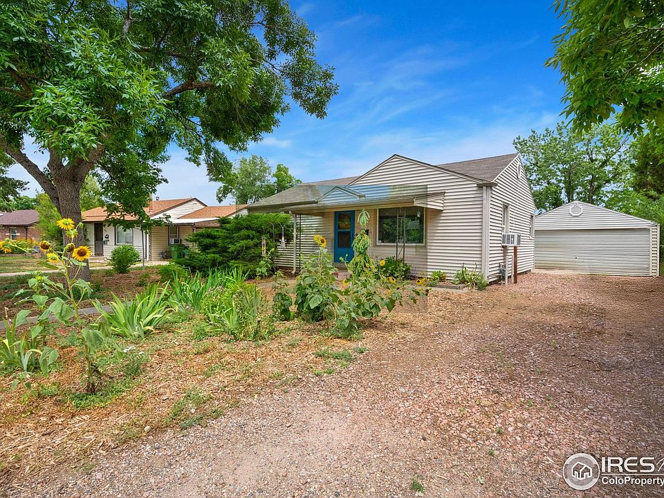 Brand new roof installed 09/03/25!! A prime opportunity awaits in this Kuykendall home, ideally situated just moments from Lake Loveland, shopping and dining. Positioned on an expansive lot, this home is a true blank slate, offering the perfect canvas for a buyer ready to create a personalized new vision. The functional layout is filled with natural light, showcasing a spacious living room with a wide picture window, an open kitchen with an adjacent laundry area and three generously sized bedrooms that share a full bathroom. Original hardwood floors add charm and character, while a new roof, sewer repair and grading will all be completed prior to closing for peace of mind. The xeriscaped front yard enhances curb appeal, and the sizable backyard invites endless possibilities for gardening, outdoor living or future additions. A detached two-car garage provides both parking and ample storage space. Presenting a rare opportunity for investment, this property offers endless potential in a growing community in Loveland.