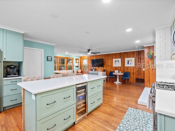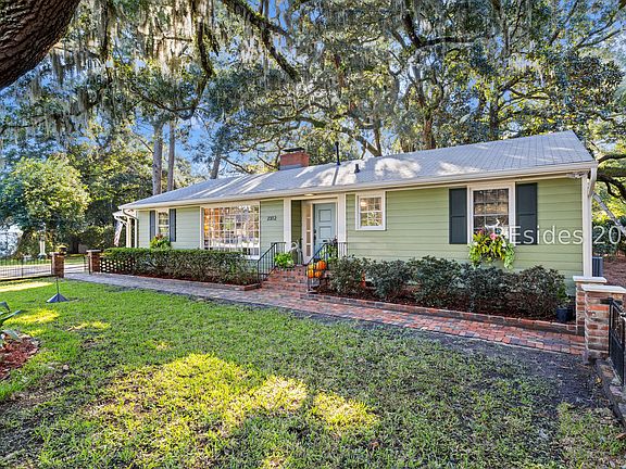 Tucked beneath a canopy of moss-draped Live Oaks, this beautifully renovated Lowcountry home blends timeless Southern charm with thoughtful modern updates. Ideally situated approximately one mile from Historic Downtown Beaufort, and connected to the Spanish Moss Trail, everything Beaufort has to offer is conveniently close by. The property offers the rare combination of peaceful residential living with effortless access to the heart of the city-where dining, shopping, waterfront parks, galleries, and local events are all at your fingertips. Inside, the 3-bedroom, 2-bath ranch is filled with natural light and showcases original oak floors, classic architectural details, and two fireplaces that add warmth and character throughout. The open-concept kitchen is designed for both everyday living and entertaining, featuring quartz countertops, new appliances, ample cabinetry, and a spacious island perfect for gathering. The primary suite serves as a private retreat, complete with a spa-inspired bath, walk-in shower, and heated floors for year-round comfort. Large windows throughout the home frame views of lush, established gardens filled with camellias and fruit trees, creating a serene indoor-outdoor connection. The fenced-in yard provides privacy and space to relax or entertain, while the carport and approximately 400-square-foot workshop offer added flexibility for storage, hobbies, or a home studio. Thoughtfully updated and ideally located near downtown Beaufort, this home delivers classic Lowcountry living with everyday convenience.