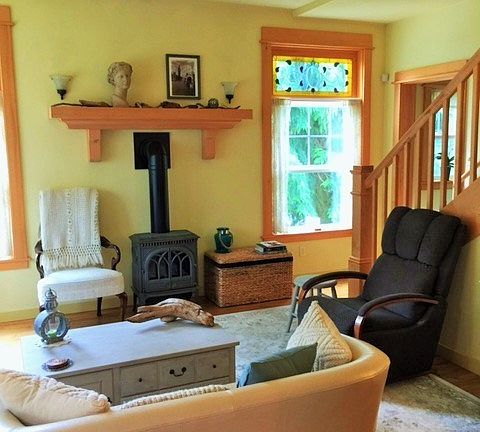 A jewel in the PT Treehouse Community. One of a kind cottage with maple floors from one of PT's old buildings. Trimmed with Alaskan yellow and red cedar and a hand built maple staircase. Enjoy the kitchen with an antique Wedgewood cooking stove, custom copper hood, Franke county sink and granite counter top. Upstairs bath has claw foot tub and custom built vanity. Beautiful English garden. Public trail and Fort Worden out your back door. Short walk to North Beach or Fairgrounds. Storage Galore.