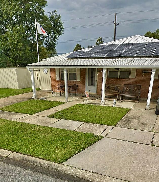 This home has a metal roof with solar panels-Conveniently located near schools, churches, and just one block from a neighborhood playground, perfect for families.