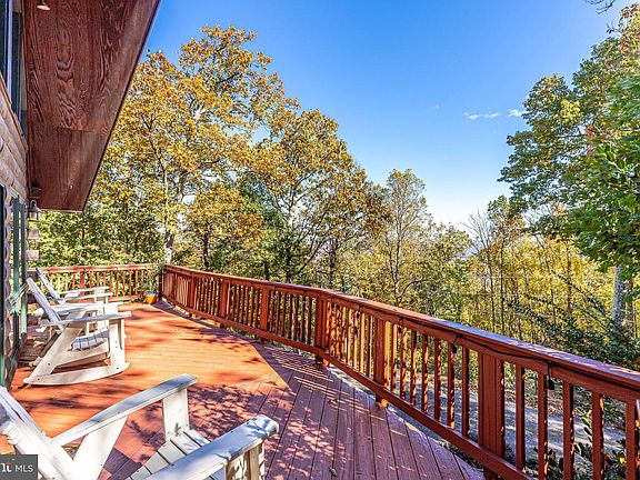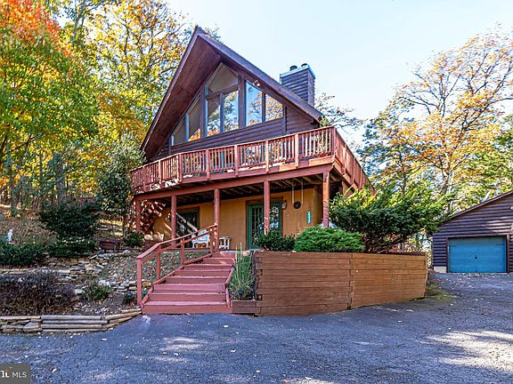 PLEASE ALLOW A 2HR ADVANCE NOTICE FOR SHOWINGS*** PICTURESQUE CONTEMPORARY LOG HOME with panoramic views and Verizon FIOS perfect for hybrid work. Detached 2 car garage has electrical sub panel, water and workshop area. MAKE THIS YOUR HOME FOR THE HOLIDAYS, enjoy spectacular mountain views from a WRAP DECK. 22ft Dramatic Vaulted Ceilings greet you at the entrance, showcasing BEAUTIFUL WOOD BEAMS and NATURAL STAIN logged lined walls. OPEN FLOOR PLAN great rm w/ views of nature and shines with natural light. Cozy up to the WOOD BURNING FIREPLACE (insert replace 12/20) with 8ft Antique Oak Mantel(replace 12/20). The galley kitchen has 2-tone cabinets; SS appliances that include a gas range (replaced 12/2020), FRENCH DOOR REFRIGERATOR, and oversized drop-in sink. The 2 main level bedrooms include wall to wall carpet (replaced 12/2020) and an updated full bathroom with block shelving and log wall accent. Allow the vaulted ceiling to carry you to the 3rd level loft that overlooks great room where you can marvel at the GOLDEN OAK HARDWOOD FLOORS below. The MASTERS RETREAT, on level 3, offers privacy and serenity as it faces the 800 ACRE NATURE PRESERVE, that backs up to this property. Master Suite has skylights accenting the vaulted ceiling and highlight the hardwood floors. The UPDATED MASTER ON-SUITE is flooded with NATURAL SUNLIGHT. Ground level offers TRIPLE WALKOUT BASEMENT with golden oak lined planks ceiling and recessed lighting, front and rear entry, a complete REC ROOM or second family room with a WOOD STOVE FIREPLACE. This level offers a FOURTH BEDROOM and 3-piece FULL BATHROOM. Utility room offers storage, newer washer/dryer, and utility sink. Grounds include re-graveled & leveled entry (9/2021), natural stone walls, fire pit and wood shed (AS-IS). American Home Shield Warranty (THRU 9/2022), roof w/50yr transferable warranty. Exterior logs recently stained treated and caulked. Semi-furnished option available.