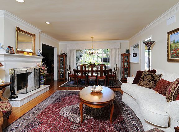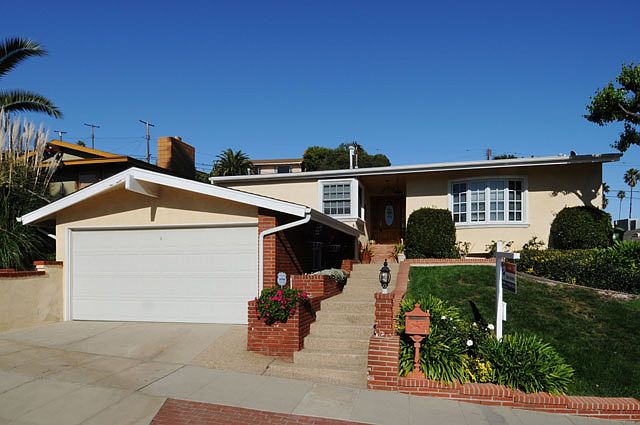 Located in upper South Shores, this spectacular ranch-style home sits high above street level and has a view of Catalina Island. Spacious, open floorplan features glistening natural oak hardwood flooring, white marble fireplace with custom mantle, formal living room, dining room and large family room ...perfect for entertaining, and three spacious bedrooms with two remodeled baths. The galley-style country kitchen has custom oak cabinetry, white ceramic tile countertops with designer hand-painted accents, kitchen nook, ceramic tile flooring and looks out to the lushly landscaped and tropical b