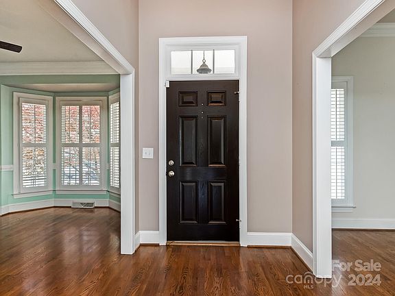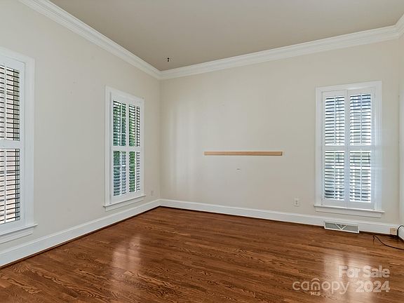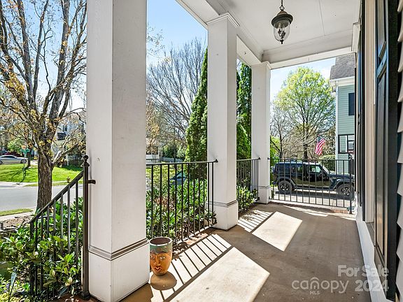 Fabulous floor plan in one of Charlotte's favorite neighborhoods! Hardwood floors throughout the main level including the main level primary bedroom area! Kitchen area is open to the two story great room and breakfast area. The large primary bedroom features include a walk-in shower and closet with custom built-ins. The covered rear porch has plantation shutter to create a private oasis that overlooks the professionally landscaped property. The paver patio is adjacent with an outdoor fireplace area and is surrounded by well loved perennials for year round enjoyment. The second level features 4 bedrooms with generous closets, a flex room and a huge walk-in attic. There is new carpet in the second level bedrooms and one bedroom features hardwood flooring.