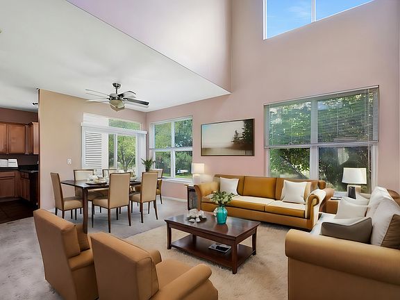 MULTIPLE OFFERS RECEIVED, ASKNG FOR HIGHEST & BEST OFFERS BY 1PM, SATURDAY, 6/15~Great opportunity to make this 2-story unit your own with just paint and flooring needed~High ceilings throughout the 1st floor including the 2-story foyer and living room, and 10' ceiling in the kitchen~Sliding glass door off the eating area leads to a private patio~White doors and trim throughout~42" maple cabinets in the kitchen~The master bedroom suite features a walk-in closet plus a private dual vanity bathroom with soaker tub and separate shower~Bedroom 2 also has a private full bathroom~2nd floor laundry~The attached 2-car garage keeps you out of the elements~This unit is located in a cul-de-sac with less traffic~Enjoy maintenance free living with lawn care and snow removal included in the low monthly assessment.