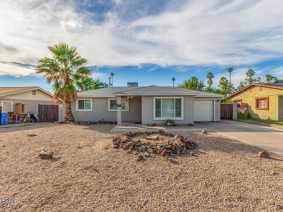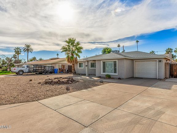 Seize the chance to own this charming 4-bedroom home with no HOA! You're greeted by a serene living room with recessed lighting, a contemporary palette, blinds, and stylish wood-look flooring. Gather loved ones in the dedicated family room, complete with double French doors that lead to the backyard for seamless indoor-outdoor flow. The kitchen features granite counters with a matching backsplash, white shaker cabinets, a hanging pot rack, stainless steel appliances, and a peninsula with a breakfast bar. The primary bedroom boasts soft carpeting, an ensuite with dual sinks, and a walk-in closet. Spend enchanting evenings in the lovely backyard, offering a covered patio, direct alley access, well-laid pavers, and a manicured lawn for outdoor activities. Don't miss out on this gem!