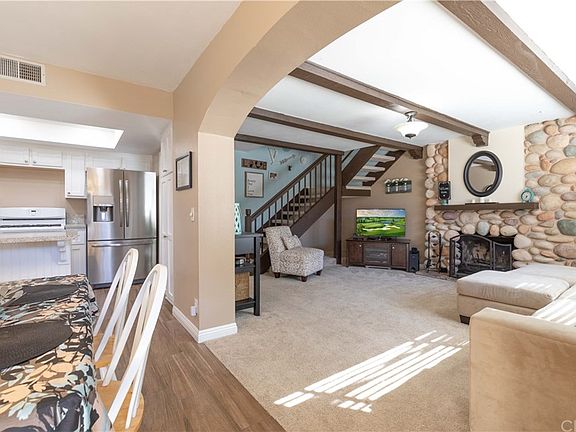 Country Hills Community Presents !! This Lovely 2 bedroom 2 bath ,1300 sq ft Update home. This home Features Beautiful Tile wood flooring as you enter the home and in the kitchen and dining area. Living area has New carpet 1 yrs old, with a beautiful gas fireplace for those cozy cool nights. The kitchen Has new Updated Quarts counter tops and New Cabinets, recessed lighting. New Sink and Handle. Dishwasher is 1 yr old, Gas Stove. Hall bathroom with new Vanity Quarts counter top. Upstairs you will find 2 nice bedrooms with ceiling fans, carpet, and Master is a good size for a Kings bed. A lovely patio off the Master with View of the Birch Golf course. The master bath has new Quarts counter top, new laminate floors. Upstairs painting is 1 1/2 yrs old. A/C and heating . Orange tree in front, Plumaria tree in the backyard. Nice getaway in the backyard. Manuel Sprinklers in the front and backyard planter. Washer and Dryer hookup in the garage.THIS IS A MUST SEE HOME.