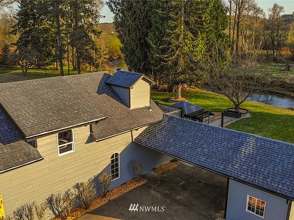 Beautiful remodeled 3 bedroom farm house with 1 bedroom, ADU for those guests. Very quiet farm area with close access to I-5. New appliances , recent roof, brand new heat pump and washer and dryer in both units stay.. All the work has been done for you to come and enjoy. Main house SF is 1969. ADU has 792 SF of living space including a full kitchen, one bedroom and a living room. Don't miss this one. Over 400 LF of Newuakum River frontage.