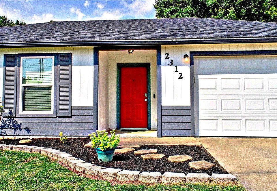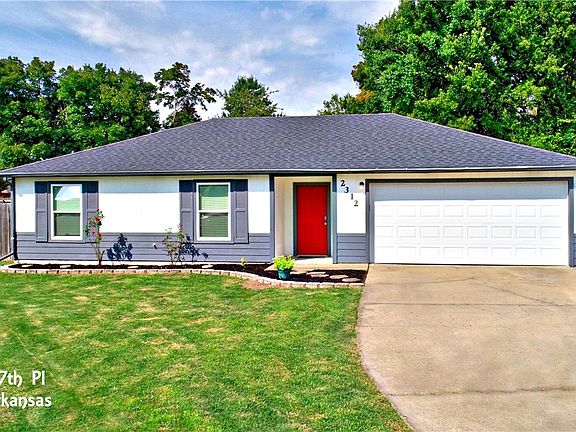 Super cute and close to everything Rogers including: schools, shopping, trails, restaurants and I-49. Home was completely remodeled in 2022 with new paint on interior and exterior, soft close kitchen cabinetry and hardware added, new granite countertops added, new luxury vinyl plank flooring added, subway tile backsplash added, granite kitchen sink added, new faucets, new windows, new interior doors, custom cedar barn door added to primary bedroom, walk in tile shower added, new granite in parimary bath, new fixures. Roof was replaced in 2020, hvac unit was replaced in 2019, shed is attached to the home and is 72sqft. Be sure to check out the big fenced yard and covered patio.