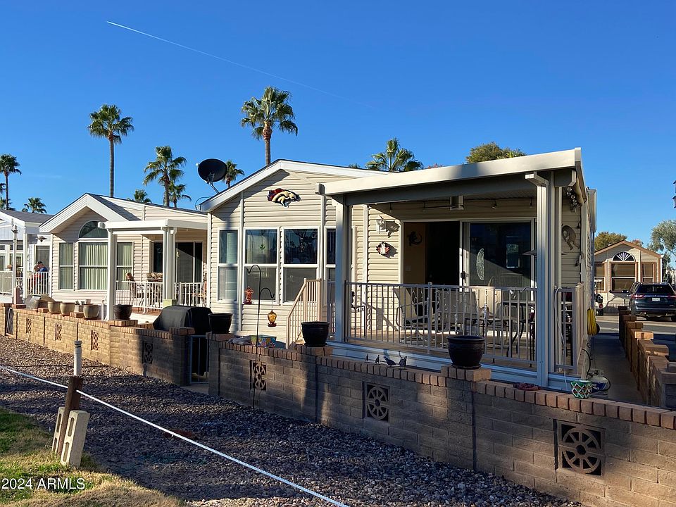 The perfect winter retreat! Enjoy golf course, and Mountain View's from your spacious deck perfect for entertaining, friends and family! New appliances, new roof, upgraded electrical, including remote, temperature control, and keyless entry, reverse osmosis water system. Quality built Arizona room is nicely furnished, solid surface flooring throughout. East, facing views of the superstition mountains from inside or out. Single level living no interior steps! You could be the next owner of this well-maintained home.
