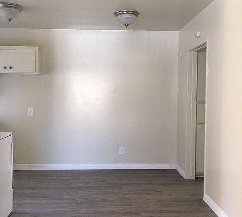One bedroom, one bath unit. New paint and new laminate flooring throughout the unit. One car garage included. Onsite laundry room. Water and trash included.
