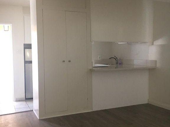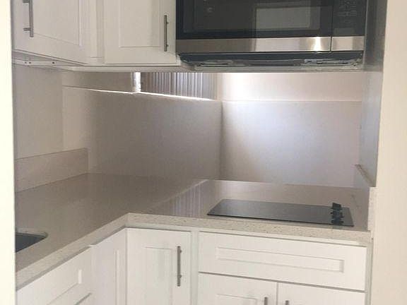 Single downstairs unit. Laminate flooring throughout unit. New kitchen cabinets and counter tops. Stovetop, microwave and refrigerator included. Laundry room onsite. No parking. No pets. Owner pays for water and trash.