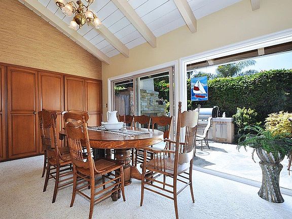 Custom-designed mid-century modern home in one of the peninsula's premier neighborhoods, close to parks, hiking trails, Royal Palms surfing beach, Terranea Resort & Trump National Golf Course. If you're searching for a serene & very private, tropical oasis/retreat....look no further! Enter through beautiful double front doors into the spacious living area with soaring open-beamed ceilings, natural PV stone fireplace & walls of glass bringing the outside in....complete w/lush landscaping, built-in BBQ, fireplace & fountain. A second secluded patio/retreat off the Master suite is perfect for enjoying your morning coffee or soaking up some sun. There are two spacious bedrooms, plus an additional "bonus" room which is currently a home gym/office. The beautifully remodeled kitchen has tile countertops, custom cabinetry, Viking 6-burner professional cooktop & Kitchenaid double oven, as well as a stainless steel center island & bar area, & is adjacent to the formal dining area. There are newer Milgard vinyl dual glazed sliding glass doors throughout with custom automatic rolling shutters. The Master suite with bath has Kohler toilet and bidet. Tropical/safari décor throughout this eclectic & unique home lends itself well to the peaceful/serene ambiance. Property is completely fenced w/dog run, RV parking & pool-sized rear yard.