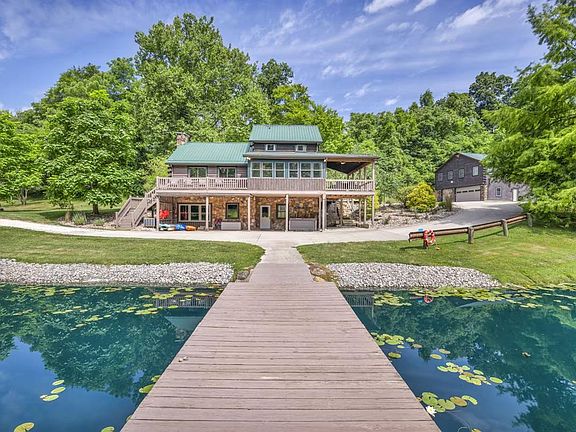 Step into an enchanting cabin designed for comfort, relaxation, and adventure. With 15ft vaulted ceilings and a dramatic natural stone fireplace, the open-concept living room seamlessly connects to the dining and kitchen areas. The fully remodeled kitchen features a large dining table seating up to 12 guests, a stunning waterfall-edge kitchen island, and a fully stocked kitchen ideal for culinary adventures. Outdoor dining and relaxation are enhanced by a covered upper deck, a brand new 8-person hot tub under a covered patio, and expansive decks offering serene views and plenty of seating.