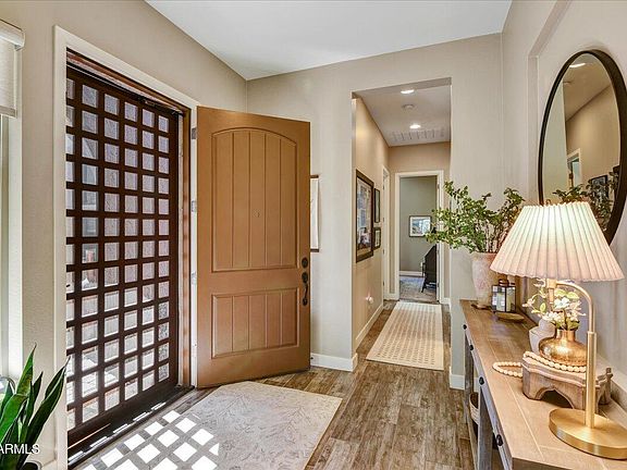 Discover sophistication and comfort in this single-level residence, located in coveted, gated Sanctuary at Desert Ridge. Tastefully appointed home offers exceptional open-concept floor plan, designed to entertain a crowd and enjoy a relaxed daily life. Show-stopping kitchen, fit for a chef, w/substantial island for gathering and space for culinary prep/storage. Handsome full-service bar provides elegant space for cocktail hour and casual refreshment. Office w/custom Murphy bed easily functions as a 4th bedroom. Enjoy golden hour out back with al fresco dining, views, pool w/water feature, covered patio with TV. Quality transitional finishes extend throughout the home. Residents enjoy exclusive community amenities, including large pool w/lap lanes, gym and clubhouse. Walking paths paths connect Sanctuary w/ Desert Ridge Marketplace, offering dining/shopping/entertainment options. Close access to the 101 Loop for easy commute. Lock n' leave convenience and a true lifestyle upgrade!