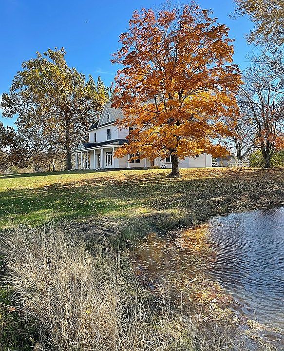 2.5 story home in a rural setting on 5 acres, more or less; 4 bedrooms; master suite with a claw foot bath, walk in shower and walk in closet; 3 full bathrooms; plenty of storage; partial basement; yellow pine wood floors, hand carved woodworking features; pocket doors; vintage light fixtures; 24 ft x 36 ft detached 2 bay garage; solar panels; large patio; mature trees providing a shade canopy; HVAC heat pump for second floor; propane HVAC on first floor; Royal wood burning furnace (if you choose this heat source); 200 yards from blacktop road; 2 ponds; across the road from a rural country church; wild black berries, pecan trees; pear and persimmon trees; gardening shed with electricity;