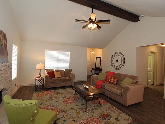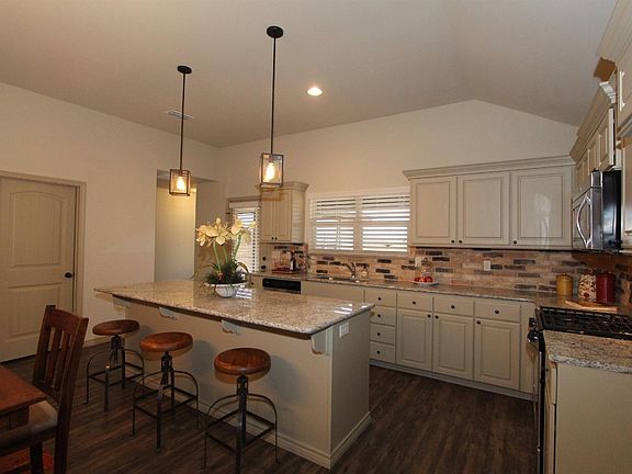 Light and Bright Mediterranean Style 4 Bedroom 2 Bath Home in Award Winning Lubbock Cooper School District~ Ventura Homes Design Flares in Every Detail of this Fox Ridge Home~ Large Granite Island with Seating in the Open Kitchen~ Old Chicago Tile Back Splash~ Stainless Steel Appliances~ Gas Cooktop~ Microwave~ Abundant Storage~ Vaulted Ceiling with Stained Wood Beam~ Custom Lighting throughout~ Vinyl Plank wood Flooring with Stone Surround Fireplace in the Family Room~ Bronze Hardware~ Isolated Master Suite w/ Double Vanities~ Separate Tub & Shower~ Large Walk-in Closet~ Linen Storage~ Framed Mirrors~ Addition Features include~ Large Pantry~ 3 Guest Rooms~ 2nd Bath w Double Vanities & Tub/Shower Combo~ 2 inch Faux Wood Blinds~ Landscaped~ Sprinkler & Sod~ 6 Foot Fence with Steel Posts~ Full 1-2-10 Builders Warranty! Call for a Private Showing!