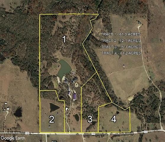 Create your new Resort & Ranch 100 Acres 4 TRACTS ONE DAY to BUY ANY COMBO OR ALL For Sale by Live AUCTION Saturday, Dec 4th at 11 am. Registration opens 9 am. at 2313 CR 122 Gainesville. THIS IS TRACT 2 FEATURING 12.7 acres of pasture & mature trees, large stock pond. Opening bid 5k per acre. Also for sale Tract 1 61 Acres Featuring Resort Home. Guest Home, Private Lake, Views, barn Opening Bid 500k. Land Tracts Opening Bid 5k per acre Tract3 w15 Acres Tract4 w11 acres. A 10% Buyers Premium will be added to the highest bid and due payable by check with proof of funds. Buyer Pays Title Policy Must Close On or Before. 01.28.2022. Buyer to verify all information. Cash or Buyer to arrange outside financing.