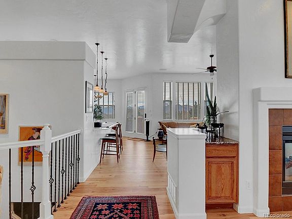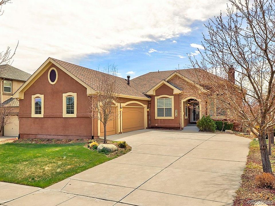 Gorgeous stucco Rancher located in the prestigious Flying Horse golf community. This open and bright floor plan features gorgeous hardwood floors throughout the main level, large kitchen w/newer stainless appliances, New granite counter bar, and plenty of storage space. The living/great room is airy w/high ceilings, cozy fireplace & dining area w/walk out to back patio. Main Level Features Formal Dining Room w/ Hardwood Floors, Custom Paint & Lighting, Butler's Cabinets, Arches, Gas Fireplace & Coffered Ceiling. Main level master suite walks out to back patio w/spacious walk in closet and attached 5 piece bath with tile shower, double vanity, and fireplace. Huge walk out basement with new laminate floor and wet bar.