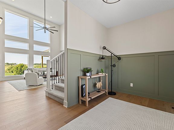 Welcome to this beautifully crafted Happe Homes 1.5-story Raleigh floor plan offering luxury, comfort, and custom details throughout. The main level boasts a spacious primary suite featuring tile shower, large double vanity, enclosed toilet area and walk-in closet. The large family room with soaring double-height ceilings, a wall of windows that flood the space with natural light, and a stunning fireplace flanked by built-ins is sure to impress! The gourmet kitchen is a chef's dream, complete with a generous butler's pantry offering ample storage. A dedicated home office makes working from home a breeze, while a stylish drop zone with built-in bench and a convenient half bath add everyday functionality and round out the main level.