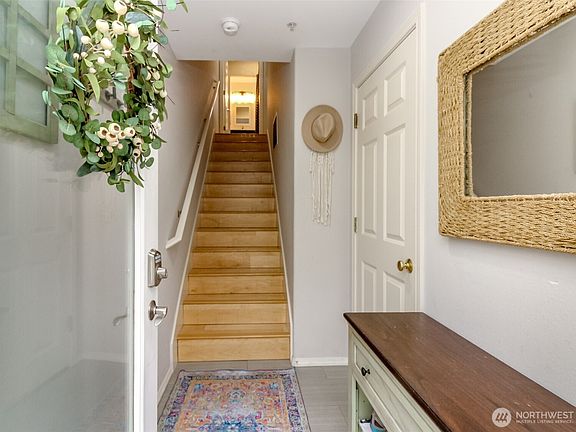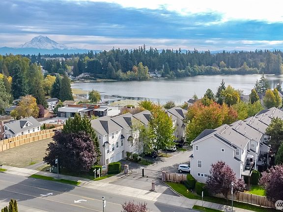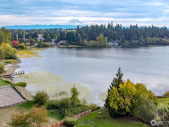 Beautifully updated 2bed, 3bath condo nestled in a private gated community. New flooring and quartz countertops add modern elegance throughout. Cozy up by the gas fireplace as sunlight pours through large windows, filling the open-concept living space with warmth and light. The spacious master suite features a private bath and a custom closet system, perfect for organized living. Step outside onto the durable Trex deck to savor breathtaking views of Mt. Rainier and Surprise Lake. Just steps away, enjoy exclusive private lake access for peaceful mornings or relaxing afternoons. With garage parking and no special assessments, this home offers a perfect blend of comfort, style, and serenity in a sought-after location.