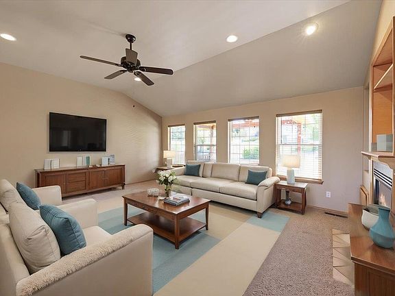 Spacious 4-bedroom, 3-bath, 3-car home in coveted Morningside-Ridgemont Estates-Camden Heights area of Spokane Valley. Enjoy reduced electric bills thanks to your own south-facing 8.4 kw grid-integrated solar power system with EV charger. Inside find an impressive open floor plan with vaulted-ceiling elegance, remarkably livable spaces & high marks for comfort & entertaining. Gourmet kitchen with island, granite countertops, stainless appliances, tile floors & backsplashes. A double-sided fireplace adds ample ambiance. Living & morning rooms both overlook expansive, T&G wood-paneled, covered deck. Primary suite has tub, double sinks, shower, big walk-in closet & private access to the back deck. Lush superbly landscaped backyard. Full daylight walkout basement with oversized finished 4th bedroom, rec room, R-I for 4th bath, generous storage & French doors that open to a private patio. Many updates in last 5 years in this thoughtfully maintained, lovely home!