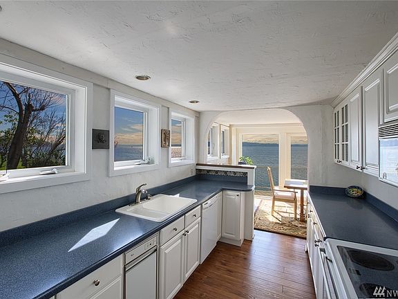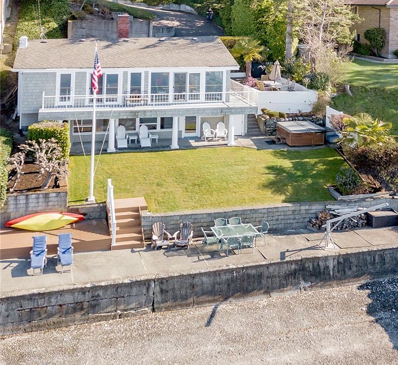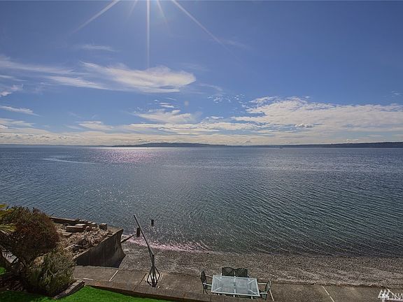 Charming, immaculate, updated waterfront beach house on 63 feet of low bank Puget Sound Waterfront.The sunsets will take your breath away.Expansive views of Puget Sound, mountains and shipping traffic.Ideal outdoor waterfront area complete with boat davit and mooring buoy.Home is move-in ready.Entertainment size dining room and living room with beautiful rock fireplace.Park directly at the house (not walk down).Extra parking for guests. Located approximately 18 minutes from downtown Seattle.