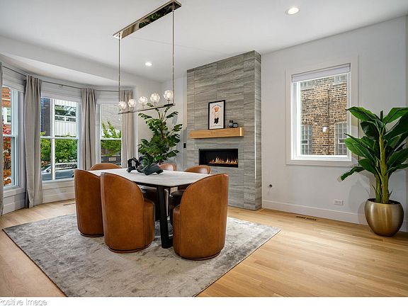 Effortlessly beautiful and elegantly designed, this Bucktown single-family home is truly a breath of fresh air. Ideally situated on a charming one-way street, this home enjoys all the conveniences of the eclectic adjacent neighborhood while savoring the serene surroundings of a tree-lined, residential street. Designed for comfort, the home features enhanced acoustic windows and an all-brick exterior that create a peaceful retreat from the city's energy. Highlights include a chef's kitchen with high-end appliances, rooftop deck with pergola, heated 2-car attached garage, fully finished lower level with 125" home theater and wet bar, two laundry areas on the upper bedroom level and lower level, abundant storage, and luxurious spa-like baths. Prepare to be wowed by the level of finishes and meticulous attention to detail throughout this incredible home. Blonde, white oak hardwood floors and motorized window shades can be found throughout the residence. Large windows facing three exposures, soaring ceilings, and an open floor plan allow an abundance of natural light to bathe and warm the living space. The dining room features a bay window overlooking the front yard, a gas fireplace, and a chandelier from Restoration Hardware. Conveniently located just off the dining room is a powder room with charcoal colored shiplap walls. The newly renovated kitchen features a custom-designed range hood with commercial-grade exhaust fan, Monogram double oven with 6-burner range and griddle, Sub-Zero refrigerator, and Bosch dishwasher and microwave. The countertops and oversized waterfall edge island with breakfast bar are made of honed Taj Mahal quartzite. A full wall of newly added storage cabinets with RH hardware creates extensive pantry space, while RH sconces and overhead lighting complete the sophisticated look. The kitchen seamlessly flows into the spacious, sun-drenched living room where you will find easy access to the attached, heated 2-car garage. Stairs from the living room lead to the composite roof deck with pergola, grill, plantings, and a water spigot. Three bedrooms are conveniently located on the second floor. The luxurious, light-filled primary suite has a graciously sized bedroom with large windows overlooking the roof deck, two walk-in closets plus an additional wall closet, and a spa-like ensuite bath with white herringbone wall tile, a double vanity with quartz counters, a soaking tub w/ convenient handheld, and an oversized walk-in shower with rain head, handheld, niche, and bench. The sprawling second bedroom could rival the size of any primary and features a bay window overlooking Montana Street, a chandelier, and a large, professionally organized closet. The sizable third bedroom enjoys a walk-in closet. A well-appointed, black and white, full bathroom with tub/shower stands in between the bedrooms and across the hall from a laundry room with oversized Samsung W/D. Downstairs, the fully finished lower level has heated flooring throughout and is an entertainer's dream with a rec room outfitted with a 125" movie screen and Sonos sound system. This recreational space features a full wet bar with wine fridge, quartz counters, and quartz backsplash. A substantially sized 4th bedroom (currently configured as a gym) has a spacious walk-in closet. An office nook provides the perfect place to work from home, and a full bath and a second laundry room with Samsung W/D complete the lower level. Restored exterior details include a turret and architectural shingled roof. Recent updates feature artificial turf in the front yard with a custom-designed, low-maintenance parkway featuring a cherry tree, river rock, and perennials. Ideally situated at the edge of Bucktown and close to Logan Square, the dining, shopping, and nightlife options are endless. Easy access to 90/94 and CTA trains and buses make it a breeze to get anywhere in the city quickly. Welcome home!
