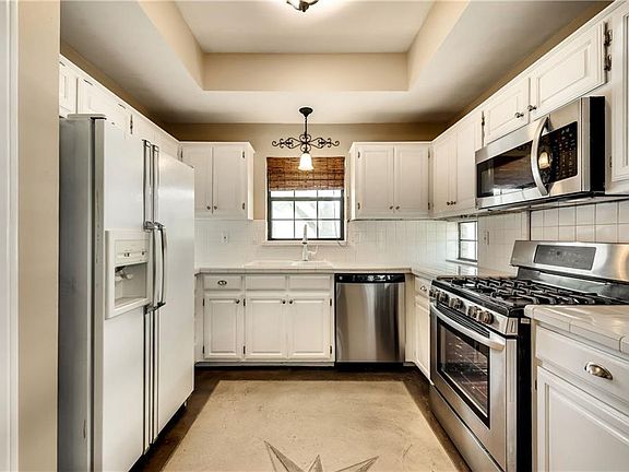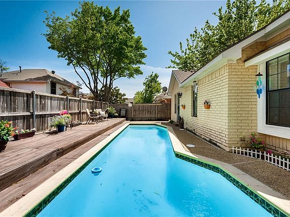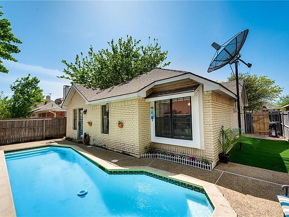 Relax by the pool at this adorable home located just a short walk from Duck Creek Golf Course. The family room, kitchen and dining room are open with great space for entertaining. It also boasts a gas fireplace with marble surround, built in bookshelves, vaulted ceilings, custom stained concrete & hardwood floors, marble in both bathrooms, updated light fixtures & new kitchen appliances. The large master suite has a vaulted ceiling with direct patio-pool access. The en-suite bathroom has a garden tub, dual sinks and a spacious walk-in closet. Centrally located between 635, 75 & George Bush Turnpike and is near lots of shopping centers. It's time to come home. A BRAND NEW ROOF AND GUTTERS ARE BEING INSTALLED!