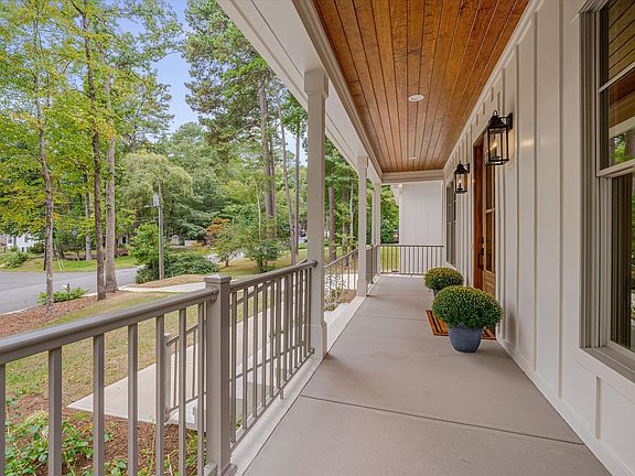 Come see this better-than-new modern farmhouse, perfectly situated on a stunning 0.45-acre lot in the highly desirable Hope Valley area of South Durham. Just minutes from RDU, RTP, Southpoint Mall, Duke, UNC, and more, this home offers unmatched convenience. Enjoy easy access to the greenway trail at the end of the street—perfect for running, walking, or biking 30 miles to Chatham County or downtown Durham via the American Tobacco Trail. This spacious home features three bedrooms on the main level with engineered hardwoods throughout, plus a bonus room or additional bedroom upstairs. The expansive foyer fills the dining and living areas with natural light, showcasing custom touches like wood beams in the vaulted ceiling and a floor-to-ceiling fireplace with gas logs, Smart remote, raised hearth, and stone ledge. The Samsung Frame TV conveys. The gourmet kitchen is a chef's dream, complete with a 48'' Kutch gas range featuring six burners, a griddle, two ovens, and a custom hood. A large center island is ideal for entertaining. You'll also find beautiful 42'' upper cabinets, lower cabinets with pull-out drawers, a Bosch dishwasher, LG refrigerator with Craft Ice, microwave, wine fridge, and a walk-in pantry with room for all your cookware (And yes—the custom hood over the stove is pretty awesome). Step outside to the oversized covered rear porch and tranquil backyard through 12' x 8' sliding glass doors—ideal for grilling and gathering outdoors. The private primary bedroom, located at the back of the house, features backyard views, large windows, a vaulted ceiling, and a spacious walk-in closet with wood shelving, shoe racks, a vanity, and a full-length custom mirror. The luxurious primary bath includes a walk-in tiled shower with a seat and adjustable sprayer, plus separate vanities with custom mirrors, lighting, and fixtures. The secondary bedrooms offer walk-in closets and share a well-designed buddy bath with double sinks, generous cabinet space, and a separate room for the tub/shower and toilet. The oversized, finished two-car garage includes a service door, storage area, gentle-rise steps into the house, and ample driveway parking. Upstairs, a private bedroom with a full bath and large walk-in closet provides additional living space and storage. Other notable features include a sealed, conditioned crawlspace; mini-split system upstairs; gas furnace and gas water heater in the crawlspace; fiber cement siding; gutter guards; and 30-year architectural shingles. The backyard is a blank canvas—ideal for a pool, outdoor kitchen, or firepit.