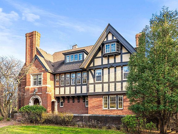 Discover a rare opportunity to own one of Duluth’s truly grand historic homes. This impressive Elizabethan-style residence, built in 1913, showcases timeless craftsmanship and remarkable architectural detail. From the moment you arrive, the arched entryway sets the tone, welcoming you into a spacious foyer accented by wood-beamed ceilings, rich wood-paneled walls, and a convenient half bath. The main floor features an inviting living room with built-in bookshelves, a den, a sunroom, and a formal dining room—both the sunroom and dining room offer direct access to a beautifully tiled terraced patio. Every one of these rooms includes its own fireplace, adding warmth and charm throughout. The second floor hosts five bedrooms. The oversized primary suite includes a fireplace, walk-in closets, a sitting area, and a full bathroom. Four additional bedrooms complete this level, including one with its own full ensuite bath, plus an additional shared full bathroom for added convenience. The expansive third-floor bonus room—with yet another fireplace, a 3/4 bath, and a storage room—offers flexible space for a recreation room, studio, or whatever suits your needs. Additional amenities include a lower-level game room with fireplace, a laundry room with half bath, an attached two-car garage, and a landscaped yard enclosed with classic wrought-iron fencing. This exceptional home blends historic character with generous living spaces—an impressive property ready to be appreciated for generations to come.