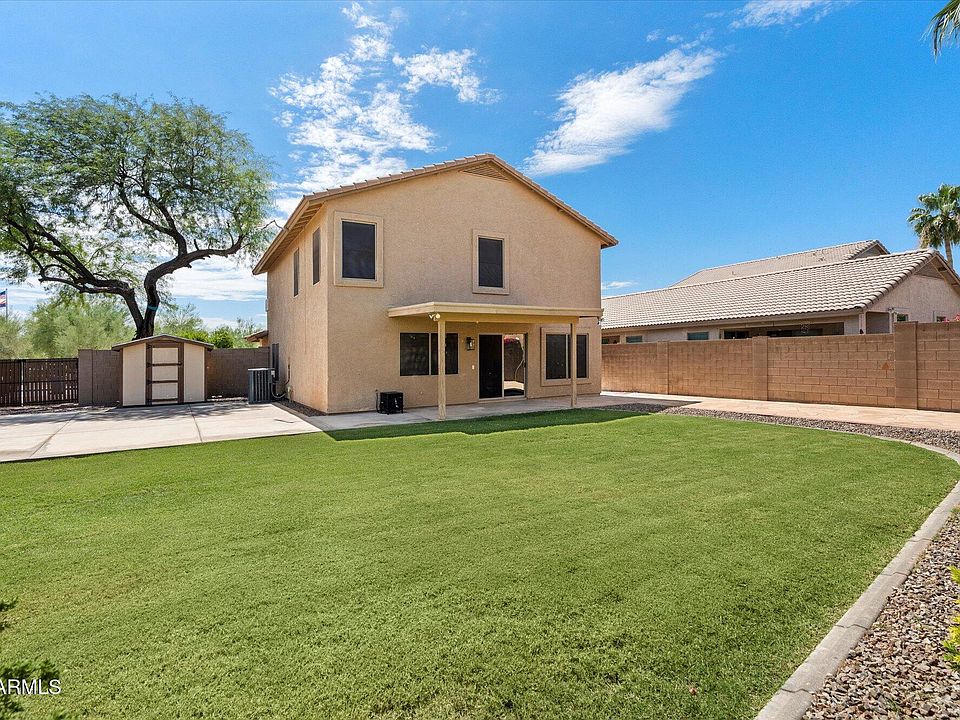 This spacious two-story home in North Phoenix features 3 bedrooms and 2.5 bathrooms, perfectly located within walking distance to highly rated Paradise Valley School District elementary and middle schools. Inside, you'll find a newly renovated primary bathroom (2025), freshly painted walls throughout, and updated guest and half baths with modern finishes. The kitchen offers granite countertops, stainless steel appliances, and new stove and dishwasher, while the built-in fireplace and ceiling fans in every room add comfort and style. The home also includes a washer and dryer, plus extra laundry room cabinetry for storage. The large backyard is ideal for entertaining or play, with grass, a covered patio, basketball pad, and a storage shed available for tenant use....Additional features include a two-car garage, a large RV gate, and biweekly landscaping service provided by the landlord. Utilities are the tenant's responsibility, and smoking is not permitted. CLOSE proximity to Desert Ridge Marketplace, Mayo Clinic and just 25 minutes to Sky Harbor!