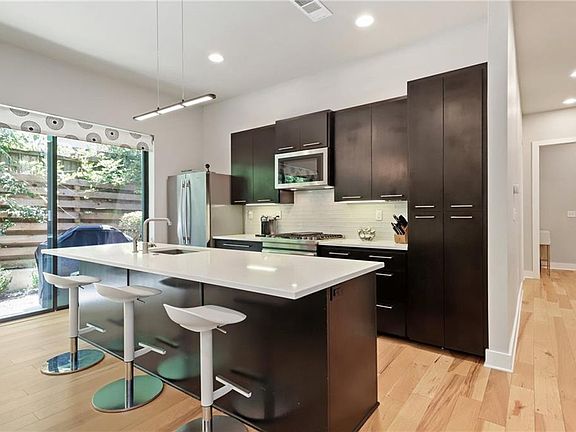 Offering the best of both urban & neighborhood living, this Tarrytown condo is just minutes from downtown & walking distance to Lake Austin & Lady Bird Lake hike/bike trail. First floor, back unit with private entrance & backyard which provides outdoor living space & serene atmosphere. Contemporary architecture & sleek high-end finishes featuring tall ceilings, bright open floor plan, hard wood floors & SS appliances. Excellent layout with an efficient use of space w/ all bedrooms containing a full bath.FEMA - Unknown Restrictions: Yes Sprinkler Sys:Yes