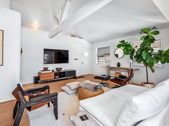 Former home of celebrated LA architect Stephen Kanner, this 3BR/2BA, 1,630 sqft Mid Century Modern property rests on a meticulously landscaped lot and dazzles with modern touches and subtle avant-garde design, in the heart of the coveted Silver Triangle and mere steps from the Venice Canals and Abbott Kinney. Enter the organically flowing interior to discover hardwood floors, high vaulted ceilings, exposed wood beams, a sprawling living room, and an adjoining dining room. Newly-remodeled kitchen features Caesarstone counters, stainless-steel refrigerator and dishwasher, as well as collectors-item 1940's OKeefe & Merritt stove. From the dining room, double sets of French doors lead to a charming, secluded garden. Sip a latte while reading your favorite book or talking with friends. The main home boasts two generously-sized bedrooms and a full bathroom while the detached studio, also with vaulted ceilings, offers a spacious living area, full bedroom, full bathroom, kitchenette, and a separate entrance. Perfect for an office, creative space, or additional living space. Quiet and safe neighborhood with plentiful street parking. Schedule your tour today! Renter is responsible for all utilities and gardener.