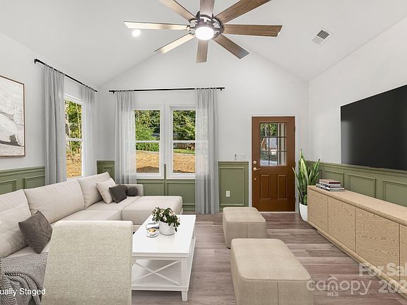 This elevated ranch home has been meticulously designed with high end finishes and is located on a large .47 acre lot with 1-car garage! The front porch welcomes you into the living room that is well lit with natural light, airy cathedral ceiling and lovely wainscotting, while the LVP floors seamlessly lead you into the gorgeous kitchen boasting stainless appliances, coffered ceiling, peninsula with bar seating, hood vent, soft close cabinetry, granite counters and walk-in pantry! Make your way to the beautiful primary suite with tray ceiling, wood trimmed accent wall and walk-in closet. No expense was spared in the primary bath with a grand 8ft glass & tile surround shower with dual rainfall fixtures, dual vanity with granite counters and tile floors. There are 2 add'l bedrooms, ample in size, plus hall bath w/ tile surround shower, granite counter & tile floors. Additional features include an adorable covered back patio, dedicated laundry room, space off the garage entry for a drop zone, all LVP & tile floors (no carpet), 1-car garage with epoxy floor, only 1 step entry into the home, no HOA and a backyard surrounded by mature trees for privacy! This home features so many upgrades and custom features that are hard to find at this price! You'll appreciate the quality construction and elevated finishes - not an average cookie cutter home! Connected to public water! 10-year Structural warranty included, pay only County taxes and close to everything you need - 1.5 miles from John Moss Lake, 2.5 miles from E Dixon Blvd, 5 miles from downtown Shelby, 14 miles to Gardner Webb University. *USDA ELIGIBLE with no down payment. You may also qualify for up to $20,000 in down payment & closing cost assistance! Call preferred lender for details!