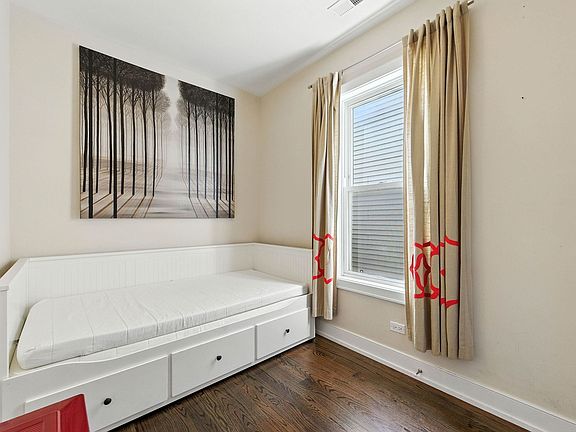 Beautifully maintained single-family starter home in Chicago's vibrant Belmont Central neighborhood. Three bedrooms plus a second level den-ideal for a home office, playroom, or guest room-and two full bathrooms, one on each floor. Main floor features two bedrooms and eat-in kitchen with stainless appliances, dishwasher, living room and full bath. Second level has large primary bedroom plus flex room/office /den. Convenient second-floor laundry area equipped with side-by-side washer and dryer, and hardwood flooring throughout that adds warmth and character. The home sits on a full-sized lot, with a huge backyard perfect for entertaining, gardening, or enjoying peaceful outdoor moments. Two-car garage allows for extra storage space. Conveniently located to vibrant Brickyard Shopping area and Grand Ave!