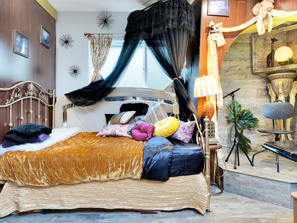 Walking distance to the beach, enjoy this affordable room rental in Venice Beach. Setup for instant booking and easy check in. For security purposes we do not provide the address until you confirm booking. We're walking distance to Venice Beach and the Venice Pier, just a short 5 minute walk Enjoy easy access to everything from this perfectly located home base. Room comes fully furnished and the rent price includes utilities. Perfect for short term, 1-3 month rentals, but open to longer term tenants as well. The space Discover the charm of coastal living in our Marina Del Rey suite, nestled in a prime location close to the marina, trendy cafes, and scenic beach paths. This thoughtfully designed space offers the ideal setting for relaxation or work, with a blend of modern comforts and local character. Enjoy easy access to the vibrant Marina lifestyle right outside your door. Step into a room where modern sophistication meets timeless elegance, featuring a striking black and gold theme. The space blends sleek, contemporary design with subtle nods to ancient style, creating a captivating atmosphere. Bold black walls contrast with luxurious gold accents, while elements like ornate furniture or vintage-inspired decor evoke classic charm. A mini stage adds a touch of grandeur, perfect for performances or intimate gatherings. This fusion of modern lines and rich, antique details offers a unique, stylish retreat that exudes both opulence and history. OUTDOOR LIVING AND ACTIVITIES In Marina del Rey, CA, outdoor living and activities are abundant, offering both scenic relaxation and exciting adventures. Here's a glimpse of what the area offers, along with nearby attractions: - Outdoor Living and Activities in Marina del Rey: Marina Beach (Mother's Beach) A peaceful spot ideal for picnicking, kayaking, and enjoying the calm waters. Families often flock here because of its shallow water and calm environment. - Venice Beach Just a short drive away, this iconic spot offers people-watching, roller skating, biking, and street performances. The Venice Beach Boardwalk is perfect for walking along the shore. - Ballona Creek Bike Path Perfect for cycling enthusiasts, this 7-mile bike path stretches from Culver City to the beach, providing scenic views of the creek and nearby wetlands. - Dockside Dining & Shopping The Marina del Rey area boasts several waterfront restaurants and shopping opportunities. Enjoy views while indulging in local seafood or cruising along the harbor on a yacht or boat. - Water Activities Rent kayaks, paddleboards, or take a boat tour from the harbor. You can even join a sailing class if you're new to the sport! - Abbot Kinney Boulevard Located in Venice, this vibrant street is lined with boutiques, coffee shops, and unique art galleries, making it an excellent spot for a leisurely stroll. - Marina del Rey Farmers Market Every Saturday, visit the local market for fresh produce and artisanal goods, offering a taste of the local culture. FUN PLACES AND ATTRACTIONS WITHIN 30 MINUTES - The Getty Center Just a 25-minute drive away, this world-renowned museum offers impressive art collections, stunning architecture, and beautifully landscaped gardens. - Santa Monica Pier A 15-minute drive, the pier has amusement park rides, an aquarium, and restaurants. It's an iconic Californian experience, with scenic views and a lively atmosphere. - Hollywood Walk of Fame Around 25 minutes away, enjoy this historical, star-studded sidewalk lined with entertainment industry landmarks. - LACMA (Los Angeles County Museum of Art) A 20-minute drive, this massive museum is home to many important art collections, including the famous Urban Light installation. - Venice Canals A beautiful and relaxing spot to explore on foot or by paddleboard, the Venice Canals are a peaceful hidden gem near the beach. - Griffith Park & Observatory Located around 30 minutes away, Griffith Park offers hiking trails, panoramic views of Los Angeles, and the iconic Griffith Observatory, which is perfect for stargazing and exploring the exhibits. - The Natural History Museum of Los Angeles County A 25-minute drive, this museum offers a range of exhibits, from dinosaurs to cultural displays, providing a fascinating experience for all ages. Whether you're looking for a relaxing beach day, a cultural outing, or a unique adventure, Marina del Rey and its surrounding attractions offer a mix of outdoor activities and entertainment perfect for all visitors.