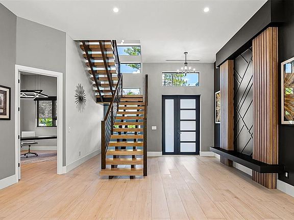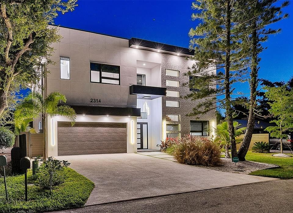 Discover refined contemporary living in this stunning one-year-old single-family residence located in the highly desirable Arlington Park neighborhood. Offering 5 bedrooms, 5.5 bathrooms, and 3,651 sqft under air (4,581 sqft total), this home blends modern design with everyday functionality. Step inside to soaring 12-foot ceilings on the first floor, where a spacious foyer and striking staircase set the tone. The expansive living room flows seamlessly into the gourmet kitchen, featuring solid wood cabinetry, quartz countertops, Thermador appliances, and an oversized island—a perfect setting for entertaining. A beautifully designed built-in in the living area adds both elegance and utility, while a bright office overlooking the front yard completes the main level. Upstairs, 10-foot ceilings and hardwood floors create an open and airy feel. A versatile den provides extra living space, while double doors lead to the luxurious primary suite, complete with a private balcony, spa-inspired bath with custom vanities, soaking tub, and oversized designer shower. Each secondary bedroom offers an en-suite bath and walk-in closet, ensuring comfort and privacy. The laundry room conveniently located upstairs between the bedrooms as well as providing extra cabinet space for additional storage. The outdoor living area is equally impressive, boasting a sparkling pool, dedicated pool bath, and outdoor shower. Additional features include impact windows and doors, epoxy-finished two-car garage, exterior lighting, crushed-shell driveway, and a security system. Perfectly situated near Sarasota Memorial Hospital, this home is less than 10 minutes to downtown Sarasota, and just a short drive to Siesta Key, Lido Key, and St. Armands Circle. With thoughtful design and premium finishes throughout, this home is truly move-in ready.