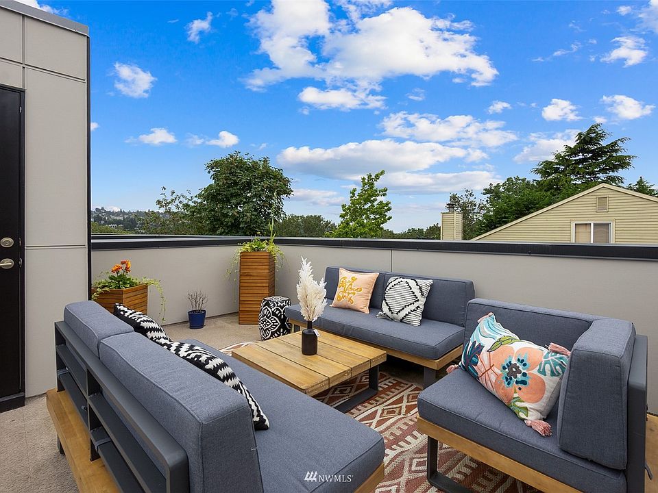 LIMITED OFFER! Seller will credit $10,000 toward buyer closing costs/buy down! Bask in the views, soak in the sun, BBQ or garden on the roof top deck, stretch your legs around the neighborhood, enjoy numerous eateries just outside your door. Sophisticated spaces, high ceilings, big windows, frplc, wood finishes, fashionable fixtures, smart 4 Star Built Green material choices and quality craftsmanship complement the three level urban design. Well-equipped island kitchen enjoys plentiful cbntry, SS applcs (stay). Two bdrms, stylish bath up; den, full bath on lower level ideal for guests. Dual HP mini-split, tankless wtr htr, pre-wired for electric car charger, no HOA. Coveted Magnolia community is THE premier address for exceptional living.