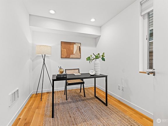 Want to buy a townhouse this year? Why wait until spring? This stunning 3BD, 1.75BTH home is available now! Built in 2020, this 4-Star Green Built rated home offers exceptional build quality, including a kitchen w/ custom cabinetry, crisp quartz countertops, & ample storage. The spacious, light-filled living room features a rare gas fireplace, while the entry floor includes an office or third bedroom with a full bath. The garage is easy to access—uncommon for townhomes—and the large rooftop deck offers breathtaking views of downtown, Elliott Bay, and Mt. Rainier. Situated near Magnolia Village and convenient shopping of Interbay. You are within walking distance to Ella Bailey, great schools & mins from Discovery Park - this one has it all!