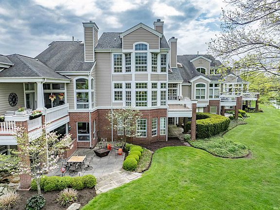 Perfectly situated along the iconic 15th fairway of Sycamore Hills Golf Club, this stunning 3-bedroom, 3-bath Turnberry Ridge condo offers over 4,500 square feet of refined living space with unparalleled golf course views. As part of Fort Wayne’s most distinguished private condo community, this home represents a rare opportunity to enjoy both luxury and lifestyle. Designed by golf legend Jack Nicklaus, Sycamore Hills is one of the nation’s top-rated courses—and from your expansive deck, you'll enjoy panoramic views of its rolling greens and mature trees every day. Inside, elegance and quality craftsmanship are on full display. The home features upgraded moldings, a spacious eat-in kitchen, and cozy gas fireplaces in both the great room, breakfast room, and finished lower level. Floor-to-ceiling windows flood the space with natural light and showcase the serene fairway vistas. A dedicated office with custom built-ins and a nearby wet bar make working or entertaining at home effortless. Recent updates include cement board exterior siding, trim & paint, new leaf-guard gutters, new chimney cap & stacks, and a new hail resistant roof (2022) for long-term peace of mind. The walk-out lower level includes new carpet, a spacious living area, and kitchenette. Enjoy the low-maintenance lifestyle with HOA-covered lawn care, landscaping, and snow removal—all within the tranquil and prestigious setting of Sycamore Hills. Don’t miss this rare chance to own a piece of championship golf course living in one of Fort Wayne’s most coveted communities.