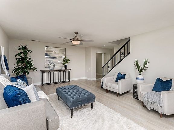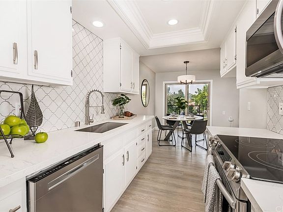 Price Reduced! This exquisite, 3 bedroom, 3 full bath townhouse is located in the prestigious Laguna Woods Village senior community and has been newly remodeled. More than $80,000 in upgrades. Central A/C. Full-size in-unit laundry. The spacious, naturally-lit living room and dining area are connected to the kitchen and first-floor bedroom. The kitchen features new quartz countertops and all brand new appliances including an induction stovetop with oven, built-in microwave and dishwasher. The dining area opens directly to an outdoor balcony, great for taking in the morning air. The downstairs bedroom features a large, bright enclosed sunroom with direct access to the outside. Perfect as an office, guest room, library or many other possibilities. Upstairs there are two master suites with double doors and en-suites featuring dual vanities, walk-in closets and a bathtub or shower. Bathrooms have been remodeled with new countertops and toilets. New carpet, paint, and light fixtures throughout. Resort-style living includes a golf course, tennis courts, 7 clubhouses, 5 swimming pools, an equestrian center and over 200 social clubs. Nearby shopping and easy access to the 5 freeway.