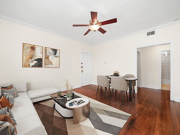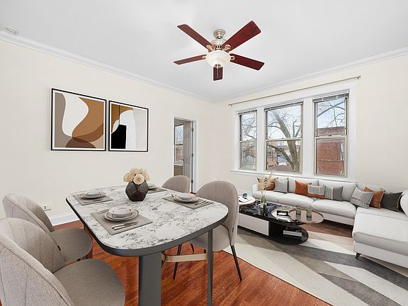 Bright and spacious south-facing 2-bedroom condo in North Center! This end unit boasts a large living room, hardwood floors, two generously sized bedrooms, central heat/AC, and a private deck. The updated kitchen features 42" cabinets, granite countertops, and stainless steel appliances. Additional perks include extra storage and FREE shared laundry in the basement. Conveniently located in the sought-after Bell School District, just a short walk to the Brown Line, dining, coffee shops, parks, and more. EASY street parking! Explore the property in 3D! Click the 3D button to take a virtual tour and walk through every detail.