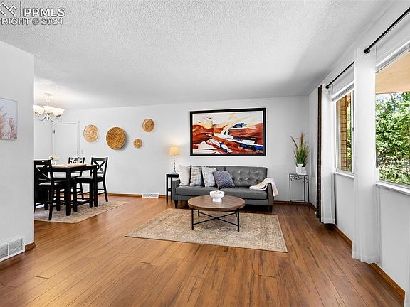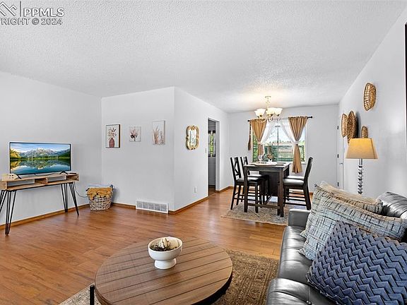 Welcome to your next chapter in Colorado Springs, where every corner of this home is thoughtfully designed to enhance your lifestyle. As you step inside, you'll be greeted by hardwood floors that stretch across a generously sized living and dining area. It's the perfect space for gathering with loved ones or enjoying a quiet evening at home. Imagine waking up in one of the four cozy bedrooms, the master complete with its own ensuite for privacy and convenience. From the upper level, beautiful mountain views paint a serene backdrop to your daily routine. Downstairs, a spacious family room anchored by a charming wood-burning stove offers a comforting retreat on chilly evenings. This level also features an additional bedroom and bathroom, providing flexible space for guests or a home office. There's no HOA to limit your creativity—just endless possibilities to make this space truly your own. Step outside to a large, private backyard where the absence of rear neighbors ensures peace and exclusivity. Here, the beauty of the Colorado landscape unfolds before you, with unobstructed mountain views that invite you to relax and take in the natural surroundings. Your new beginning is waiting.
