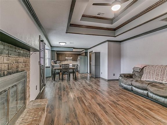 A true 4 bedroom, 2 bath, 1805 sqft, a pool with a deck, AND a storm shelter!! Beautiful home in Highland Park Edition! This home is ready for its new family, easy access to I-35, Moore and OKC! Living area is great for entertaining with brick fireplace ready to be lit for fall! Home office could be transformed into, formal dining, non traditional 5th bedroom, or kids game room! Great backyard with concrete back patio that is greeted by the 30ft above ground pool. BRAND NEW HVAC Feb 2020. High efficiency gas heater, 4 ton AC condenser. Schedule your appointment soon!