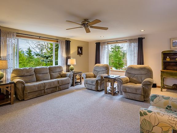 Immaculate home w/ serene mountain views close to Lake Whatcom, parks & trails! Spacious living/dining rms bathed in natural light. Chef's kitchen w/ breakfast bar, granite counters, shaker style cabs & stainless appliances. Huge master suite w/ spa-like bath w/ heated floors, double vanity & shower w/ dual shower heads. Large deck, covered patio, circular drive, oversized 2 car attached garage plus detached garage/shop & covered RV parking. Fenced garden. Central A/C. Vinyl windows. 2 year old roof.