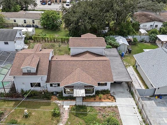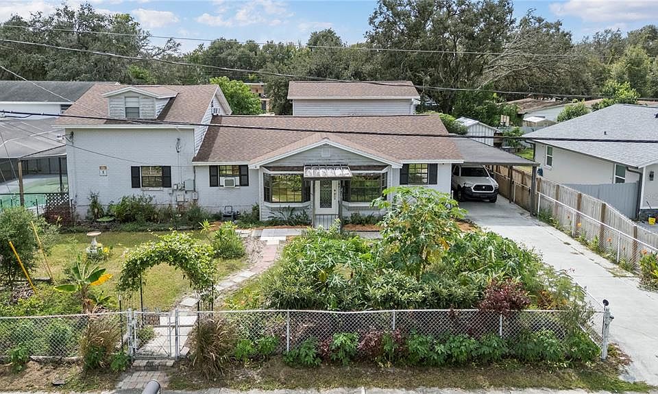 Welcome to this 2,873 square foot family powerhouse, offering four spacious bedrooms and three full bathrooms, perfectly positioned near Tampa's major medical and educational centers. Inside, the abundant square footage is elevated by rich woodwork and custom details throughout. The kitchen and main areas open to the amazing pool patio, turning everyday life into a resort experience. Beyond the main house, the detached Oversized Two-Car Garage presents a prime chance to create an Accessory Dwelling Unit (ADU), perfect for an in-law-apartment or long-term rental income. Say goodbye to parking woes! The property features two separate driveways, a standard carport, plus a dedicated large carport for RV or boat storage. Its prime location offers a rapid commute to USF, Moffitt, Florida Hospital, and I-275, placing you at the heart of convenience. This home also features upgrades such as a new Plumbing 2022, new Hot Water Heater 2022, Roof 2020, new A/C 2021, a whole house surge protections system, and extensive plantings throughout the yard including Kumquat, Loquat, Papaya, Blueberries, Key Lime, Barbados Cherry Tree, Carambola (Starfruit), Mulberry, Peaches, and Much, Much more! Call today to explore the potential!