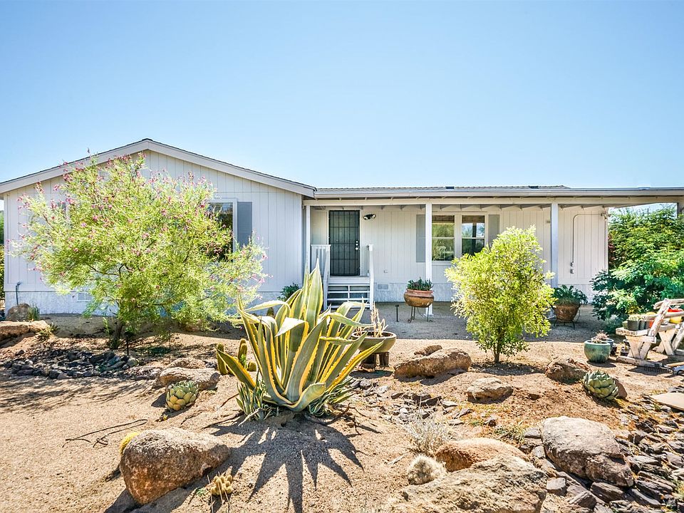 This charming home with unique botanical landscaping and fruit orchard has been carefully maintained. The detached air conditioned two car garage (22'X24') and air conditioned flex room (11'X15') are ideal for either a home based business or guest casita (with some tweaks). Garage includes a compressor and welding outlet. RV Gate with electric hookup. Cave Creek Water company (no well issues). No HOA. Flat lot with fenced backyard perfect for a horse setup or pool. Located a quarter mile from State Land and the Tonto Forest with miles of trails for outdoor recreation. Basic Home Warranty included at COE. Newer roof and just painted exterior. Taking back up offers.