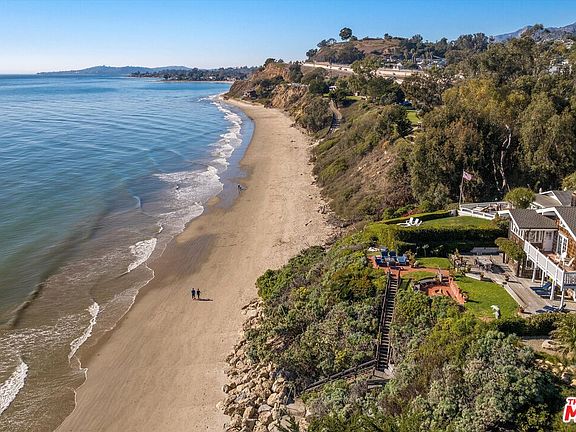 Escape to this stunning fully furnished beachfront home, one of only a select few on this premier stretch with private steps to the sand. Its south-facing position offers breathtaking sunrises, sunsets, and panoramic coastal views, with an extended location that sits farther out than neighboring homes. Designed for comfort, this home sleeps 12 with 5 bedrooms plus a loft and comes fully equipped with luxury linens, towels, kitchen essentials, and more. The spacious backyard features multiple seating areas and a fire pit, perfect for enjoying ocean breezes and starlit evenings. Just minutes from Summerland's famed Lillie Avenue, known for its fantastic boutiques and eateries, and only 15 minutes from downtown Santa Barbara, this is the ultimate coastal escape.