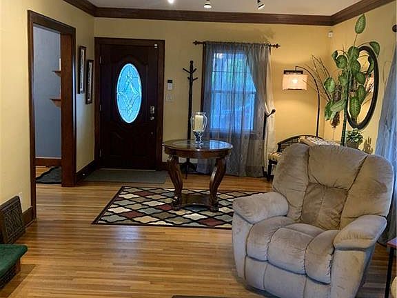 This is a beautifully updated home loaded with character. Gorgeous woodwork & crown molding in spacious living & dining rooms. Nice kitchen with new counters, sink, faucet & disposal plus a pantry & all appliances. 1st floor remodeled 1/2 bath is a great feature. Entering the staircase from the living room or kitchen will lead to the bedrooms plus an enclosed porch. The full bath is also completely updated. Two closets in the master. The basement is clean & the washer and dryer stay. Nice backyard. Replacement windows throughout. Newer plumbing & electrical. Nothing to do but move in.