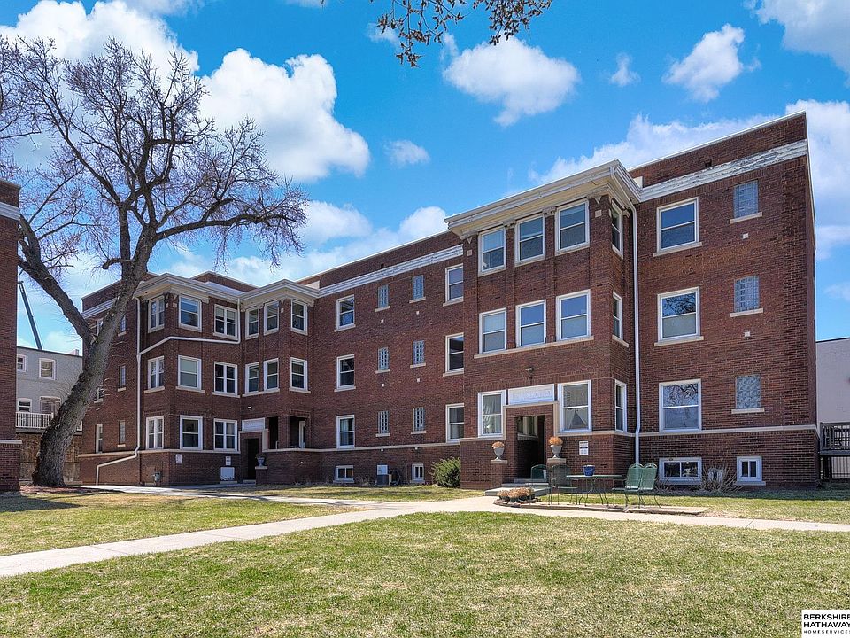 Looking for a maintenance free condo downtown? Look no further than this historic charmer in a great location! This cozy condo has 2 bedrooms, 1 bathroom and has got all the character you've been looking for. Newly updated kitchen features new Quartz counters, new sink/faucet, painted cabinets and tile backsplash. Custom trim windows and exposed brick throughout! Amazing downtown views with east and west facing windows to bring that natural light! Enjoy your morning coffee in the enclosed sunroom every morning! Located 4 blocks from Creighton, you're a 15 min walk to downtown Omaha, minutes away from shopping, and to top it off...the new street car stop will be right at your front door! Property features secured parking lot, common area and entry into the building. *HOA includes 1 parking spot, water, water heater, sewer, trash, gas, lawn maintenance, snow removal, common area maintenance, gated and secured entry parking lot, gated and secured common are